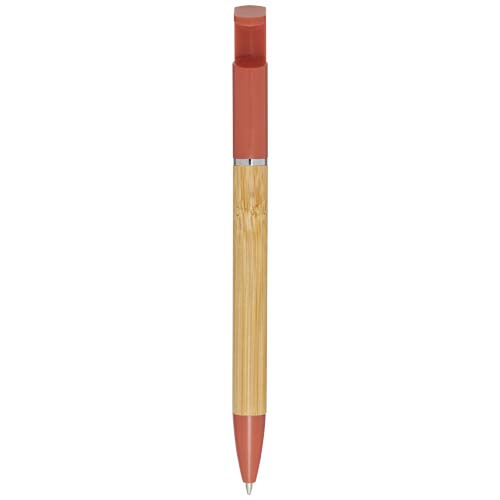 Bambusowy długopis, który pełni także funkcję uchwytu na telefon. Przycisk i środkowy pierścień wykonane są z tworzyw sztucznych pochodzących z recyklingu, końcówka z mosiądzu, a korpus z bambusa pozyskiwanego w sposób zrównoważony. Kolor tuszu: Niebieski. Żywotność: 1000 metrów. Rozmiar stalówki: 1,0 mm.