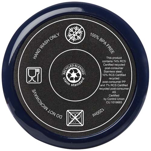 Melbourne kubek o trwałej konstrukcji z podwójnymi ściankami, dzięki czemu utrzymuje wysoką lub niską temperaturę napojów w każdym otoczeniu. Wewnętrzna ścianka kubka wykonana jest z tworzyw sztucznych pochodzących z recyklingu, a zewnętrzna ze stali nierdzewnej z certyfikatem RCS. Kubek ma pojemność 1200 ml, dzięki czemu zapewni Ci nawodnienie przez cały dzień w dobrym stylu. Posiada odporną na rozchlapywanie, wciskaną pokrywę z dwoma otworami i obrotowym zamknięciem. W zestawie słomka z recyklingu przeznaczona do kontaktu z żywnością. Tylko do mycia ręcznego.