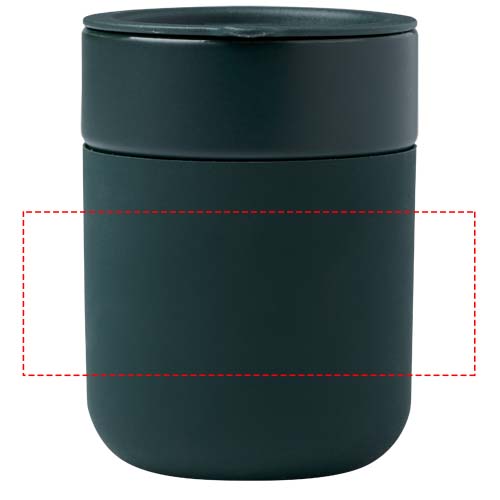 Java jednościenny kubek ceramiczny o prostej i praktycznej konstrukcji do codziennego użytku, jest wyposażony w silikonową osłonę zapewniającą wygodny chwyt. Wieczko zapobiegające rozlaniu płynu. Pojemność: 330 ml.