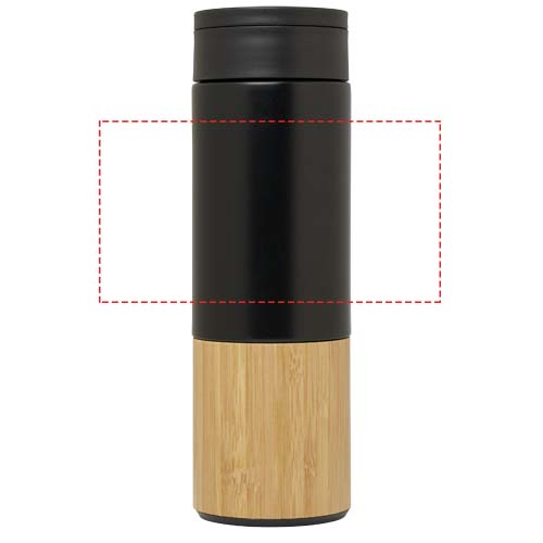 Carmen zestaw upominkowy zawierający notes A5 w twardej okładce, długopis, butelkę na wodę i parasolkę. Notatnik ma czarne elastyczne zamknięcie i tasiemkową zakładkę oraz 80 kremowych kartek w linie z papieru o gramaturze 80 g/m². Okładka notesu wraz z bambusowym półkolem pełni funkcję stojaka na telefon. Długopis wykonany z aluminium pochodzącego z recyklingu z certyfikatem RCS, z czarną powłoką natryskową i bambusowym uchwytem. Tusz długopisu: Czarny. Żywotność: 1000 metrów. Butelka na wodę o pojemności 450 ml wykonana ze stali nierdzewnej z bambusowym dodatkiem w dolnej części. Tylko do mycia ręcznego. Wymiary butelki: 6,6 x 22,2 cm. 21-calowy parasol ma czaszę z czarnej tkaniny pongee, czarny metalowy trzon, czarne żebra z włókna szklanego i bambusową rączkę. Wymiary parasola: 28,3 x 5,5 cm. Wymiary pudełka upominkowego: 36 x 30 x 8 cm.