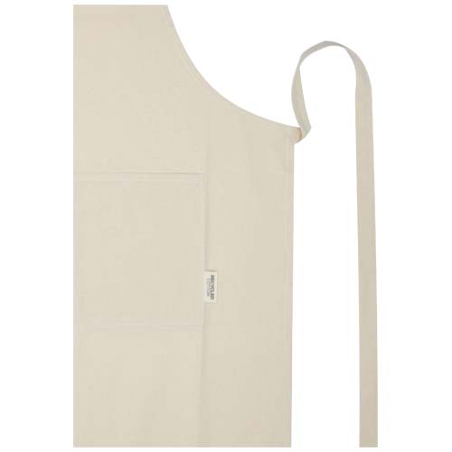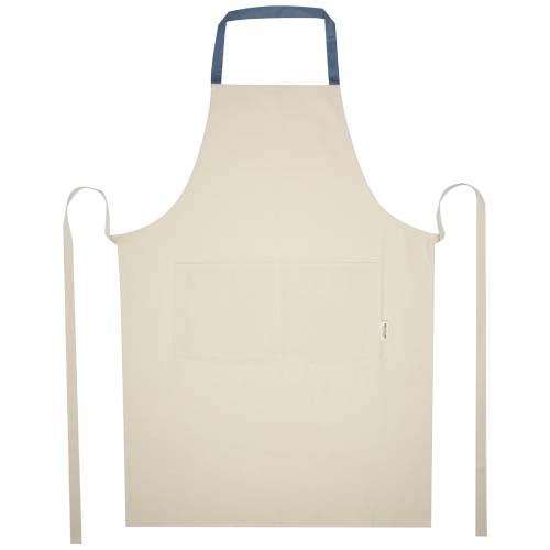 Nia fartuch wykonany w 100% z bawełny pochodzącej z recyklingu o gramaturze 200 g/m² z certyfikatem GRS. Dzięki naturalnemu kolorowi bawełny i kontrastowej pętli na szyję, fartuch ten ochroni Twoje ubrania podczas gotowania. Nia fartuch z dwoma przylegającymi do siebie kieszeniami o łącznych wymiarach 45 x 20 cm i wiązaniu z tyłu o długości 1 metra zapewnia jest zarówno praktyczny, jak i stylowy podczas pracy w kuchni.