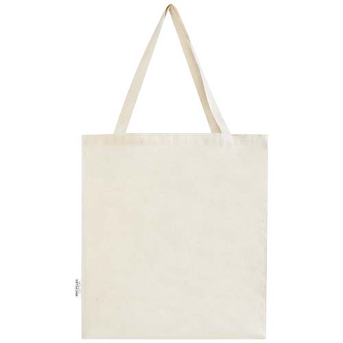 Madras torba na zakupy wykonana w 100% z bawełny z recyklingu z certyfikatem GRS idealnie nadaje się do rozdawania podczas dowolnej imprezy czy konferencji lub do zakupów, lub drobnych artykułów spożywczych. Bawełna o gramaturze 140 g/m² sprawia, że torba jest mocna, trwała i nadaje się do noszenia ciężkich przedmiotów w głównej komorze. Dzięki uchwytom na ramię o długości 30 cm torbę można łatwo przenosić. Metody nadruku dostępne dla tej torby na zakupy również posiadają certyfikat, dzięki czemu cały łańcuch dostaw jest przejrzysty i certyfikowany. Wyprodukowano w Indiach. Wytrzymałość do 5 kg.