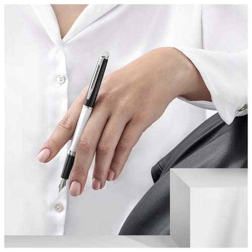 Waterman Hemisphere pióro wieczne z przeciwstawnymi kolorami i palladowymi wykończeniami to stylowy i wysokiej jakości przyrząd do pisania. Łączy w sobie nowoczesny design z tradycyjnym rzemiosłem, dzięki czemu nadaje się zarówno do codziennego użytku, jak i na specjalne okazje. Cienka stalówka zapewnia gładkie i precyzyjne pisanie, a palladowe wykończenia dodają elegancji. Pióro to wyróżnia się estetycznym wyglądem i niezawodnym działaniem i nadaje się zarówno do użytku prywatnego, jak i na prezent. Sprzedawany w ozdobnym pudełku upominkowym. Kolor tuszu: Niebieski. Żywotność: 1000 metrów.