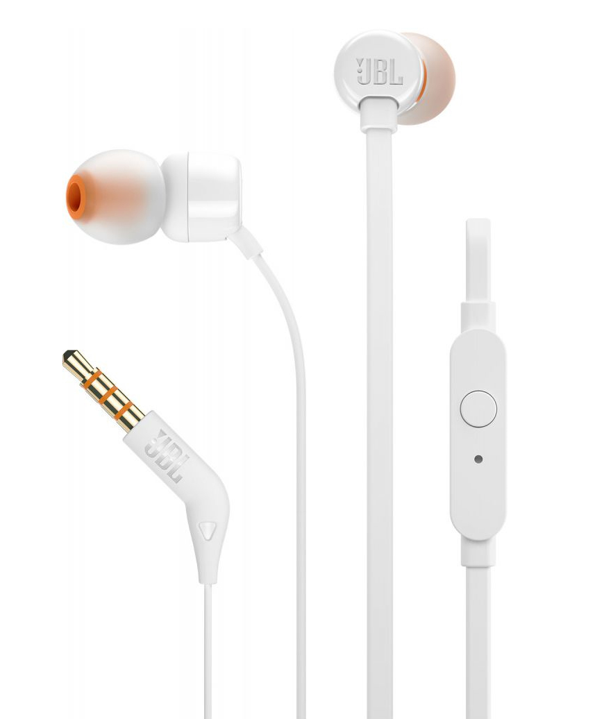 Słuchawki dokanałowe JBL T110 Są lekkie, wygodne i kompaktowe. Pod wytrzymałą obudową, para 9 mm głośników zapewnia potężny bas, odtwarzając tym samym dźwięk JBL Pure Bass, którego można doświadczyć na halach koncertowych, arenach i w studio nagraniowym na całym świecie. Dodatkowo, jednoprzyciskowy pilot z płaskim, nieplączącym się przewodem pozwala na sterowanie odtwarzaniem muzyki, a także na prowadzenie rozmów dzięki wbudowanemu mikrofonowi. JBL T110 – Twój idealny towarzysz do codziennej pracy, rozrywki w domu i podczas podróży.