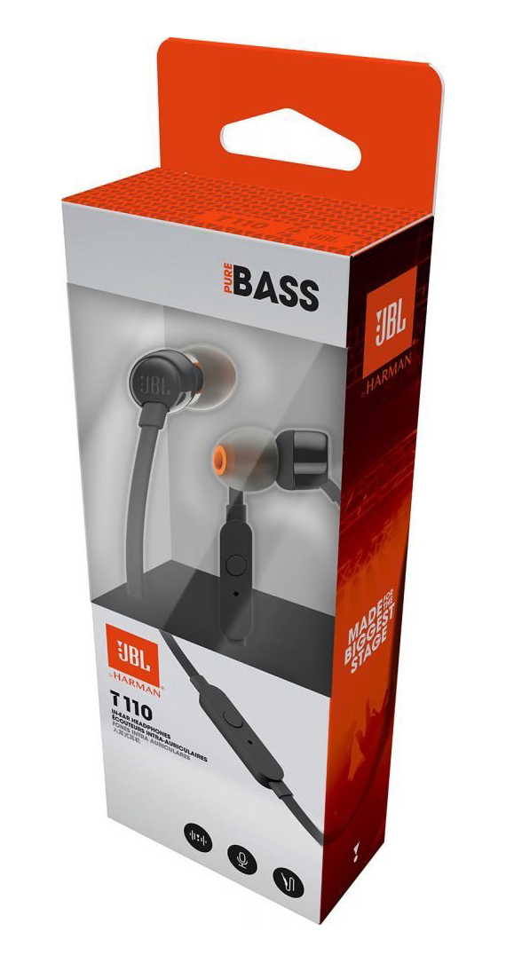 Słuchawki dokanałowe JBL T110 Są lekkie, wygodne i kompaktowe. Pod wytrzymałą obudową, para 9 mm głośników zapewnia potężny bas, odtwarzając tym samym dźwięk JBL Pure Bass, którego można doświadczyć na halach koncertowych, arenach i w studio nagraniowym na całym świecie. Dodatkowo, jednoprzyciskowy pilot z płaskim, nieplączącym się przewodem pozwala na sterowanie odtwarzaniem muzyki, a także na prowadzenie rozmów dzięki wbudowanemu mikrofonowi. JBL T110 – Twój idealny towarzysz do codziennej pracy, rozrywki w domu i podczas podróży.