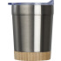 Metalowy kubek wyróżnia się trwałością i eleganckim designem. Solidne, podwójne ścianki wykonano z recyklingowanego materiału, z dbałością o wygodę użytkowania i ekologiczność. Dodatkowym atutem jest dno kubka z drewna bambusowego, które nie tylko dobrze się prezentuje, ale przede wszystkim zapewnia ochronę termoizolacyjną i pozwala na bezpieczne stawianie kubka na różnych powierzchniach bez ryzyka ich uszkodzenia. Wieczko z tworzywa sztucznego z silikonową uszczelką jest szczelne i łatwe w użytkowaniu, co zmniejsza ryzyko wylania napoju. Kubek wyposażony jest w praktyczny ustnik – wystarczy przesunąć zawleczkę, aby wygodnie korzystać z kubka. Jego ergonomiczny kształt i poręczne wymiary sprawiają, że doskonale leży w dłoni, co czyni go idealnym dodatkiem zarówno na spacer, jak i dobrym akcesorium do pracy.