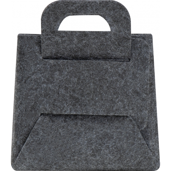 Składany koszyk z filcu to ekologiczny i elegancki gadżet, idealny do przechowywania różnorodnych drobiazgów i akcesoriów. Dzięki solidnej konstrukcji zapewnia trwałość i stabilność podczas użytkowania, co czyni go nie tylko funkcjonalnym, ale i estetycznym dodatkiem do wnętrz. Wykonany z wysokiej jakości filcu, koszyk jest wytrzymały i odporny na uszkodzenia, co gwarantuje jego długą żywotność. Może służyć do przechowywania biżuterii, kluczy, drobnych przedmiotów kuchennych, kosmetyków czy innych domowych akcesoriów. Składana konstrukcja umożliwia łatwe przechowywanie, gdy koszyk nie jest używany, oszczędzając cenne miejsce w domu. Jego neutralny, szary kolor doskonale komponuje się z większością aranżacji wnętrz. Koszyk ten może również pełnić rolę ozdoby lub stanowić doskonały pomysł na prezent dla bliskiej osoby.Cechy ogólne:Wysokość 12 cm, szerokość 13 cm, długość 19,5 cmUcho wewnętrzne krawędzie: 5 x 1,5 cmUcho zewnętrzne krawędzie: 7,5 x 3 cmWykonany z filcu RPET 2 mm.