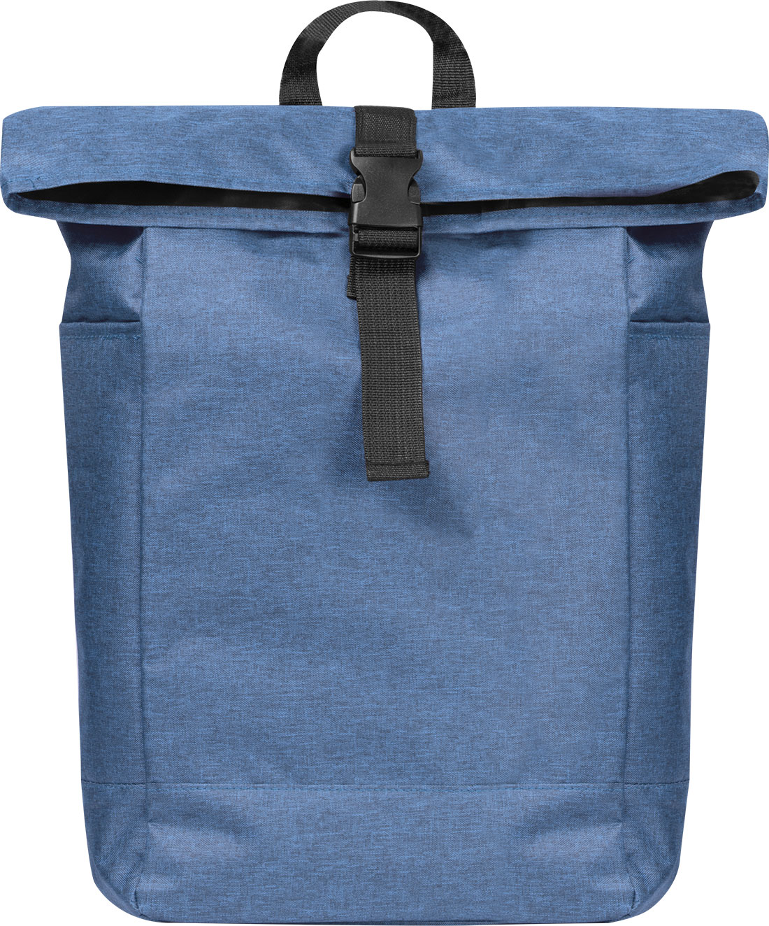 Wytrzymały plecak kurierski, wykonany z solidnego poliestru, idealnie sprawdzi się w trudnych warunkach miejskich. Posiada rolowane zamknięcie, które zapewnia dodatkową ochronę przed wilgocią i ułatwia dostosowanie pojemności plecaka do aktualnych potrzeb. Wewnętrzna wodoodporna wyściółka gwarantuje, że przewożone przedmioty są chronione przed deszczem. Plecak został wyposażony w dwie boczne przegrody na napoje, co zwiększa jego funkcjonalność. Solidne, zabezpieczone szwy oraz klamra zamykająca z regulacją zapewniają trwałość i wygodę użytkowania. Jego dodatkowym atutem jest duża przestrzeń znakowania, co umożliwia wykonanie nadruków z logo lub bardziej skomplikowanych projektów na powierzchni plecaka.