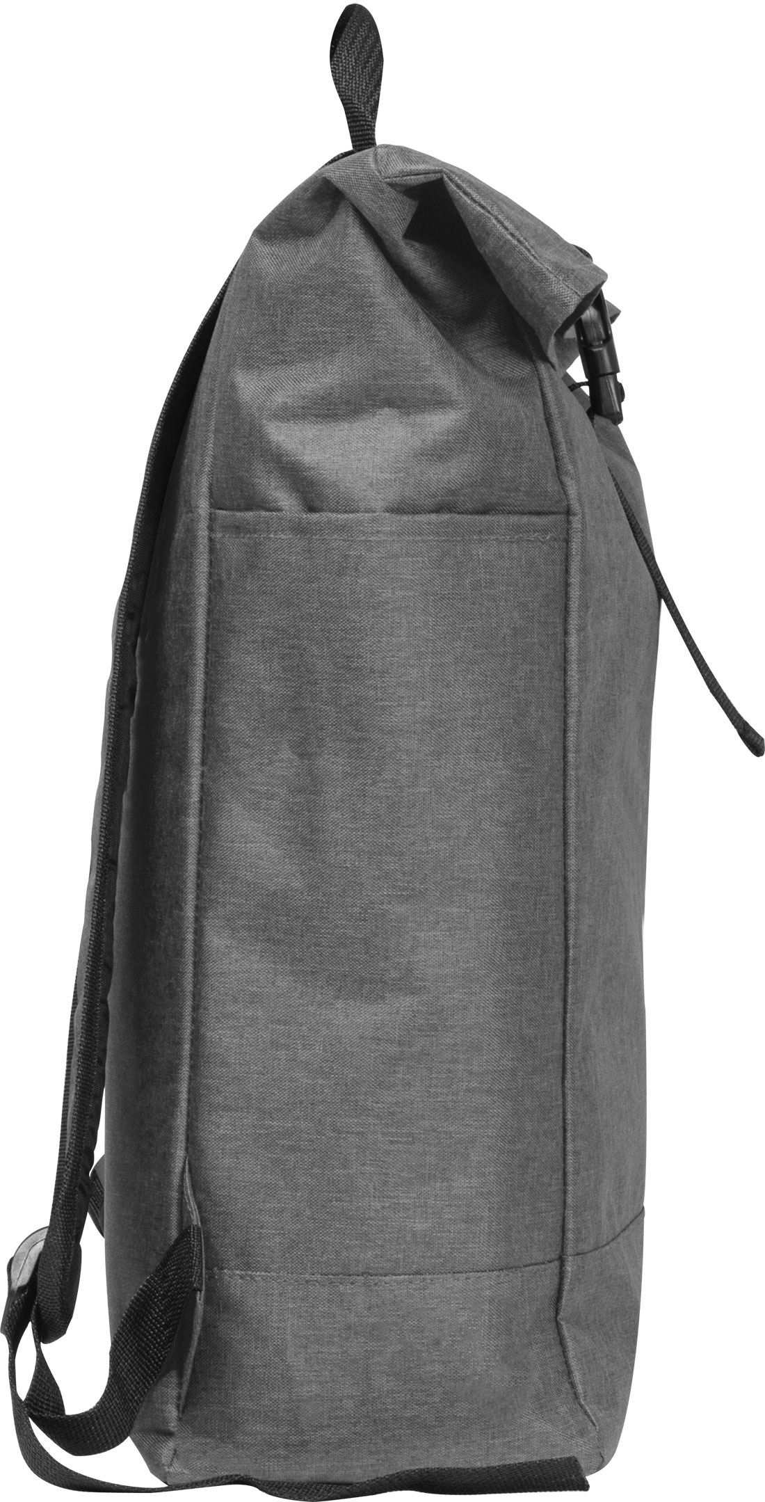 Wytrzymały plecak kurierski, wykonany z solidnego poliestru, idealnie sprawdzi się w trudnych warunkach miejskich. Posiada rolowane zamknięcie, które zapewnia dodatkową ochronę przed wilgocią i ułatwia dostosowanie pojemności plecaka do aktualnych potrzeb. Wewnętrzna wodoodporna wyściółka gwarantuje, że przewożone przedmioty są chronione przed deszczem. Plecak został wyposażony w dwie boczne przegrody na napoje, co zwiększa jego funkcjonalność. Solidne, zabezpieczone szwy oraz klamra zamykająca z regulacją zapewniają trwałość i wygodę użytkowania. Jego dodatkowym atutem jest duża przestrzeń znakowania, co umożliwia wykonanie nadruków z logo lub bardziej skomplikowanych projektów na powierzchni plecaka.