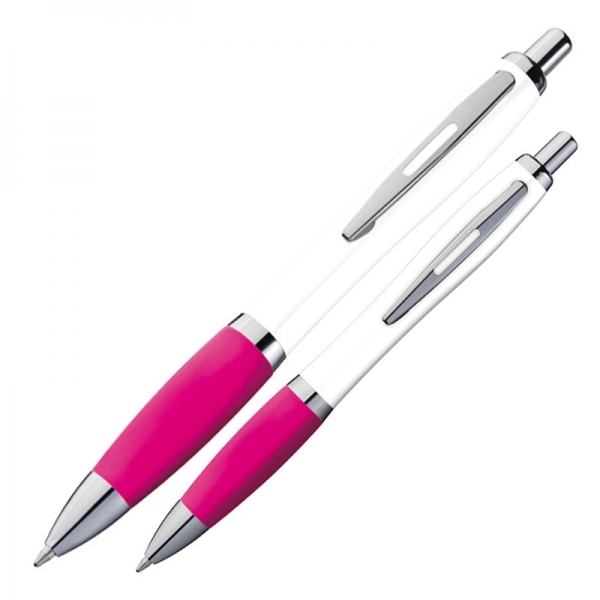 Plastikowy długopis z białym korpusem to połączenie klasycznego designu i wygody użytkowania. Wyposażony w kolorową gumkę, zapewnia pewny chwyt i komfort nawet przy długim pisaniu. Metalowy klips dodaje elegancji i trwałości, a duży niebieski wkład gwarantuje płynne i niezawodne pisanie.Idealny do codziennego użytku w biurze, szkole czy na spotkaniach, ten długopis łączy funkcjonalność z nowoczesnym stylem. To praktyczne narzędzie, które sprawdzi się w każdej sytuacji.
