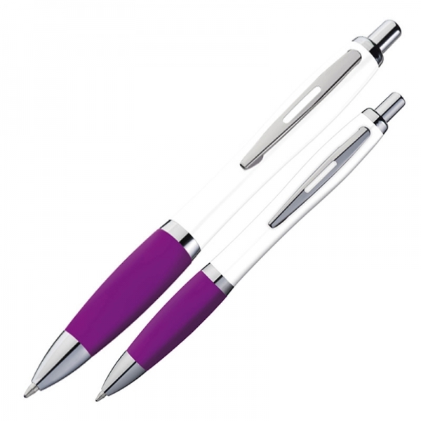 Plastikowy długopis z białym korpusem to połączenie klasycznego designu i wygody użytkowania. Wyposażony w kolorową gumkę, zapewnia pewny chwyt i komfort nawet przy długim pisaniu. Metalowy klips dodaje elegancji i trwałości, a duży niebieski wkład gwarantuje płynne i niezawodne pisanie.Idealny do codziennego użytku w biurze, szkole czy na spotkaniach, ten długopis łączy funkcjonalność z nowoczesnym stylem. To praktyczne narzędzie, które sprawdzi się w każdej sytuacji.