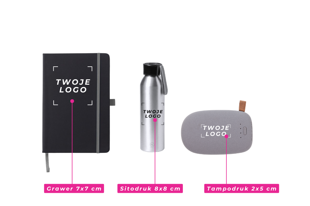 W tym zestawie trzy produkty zostaną oznakowane Twoim logo, pozostałe dwa będą nieoznakowane.