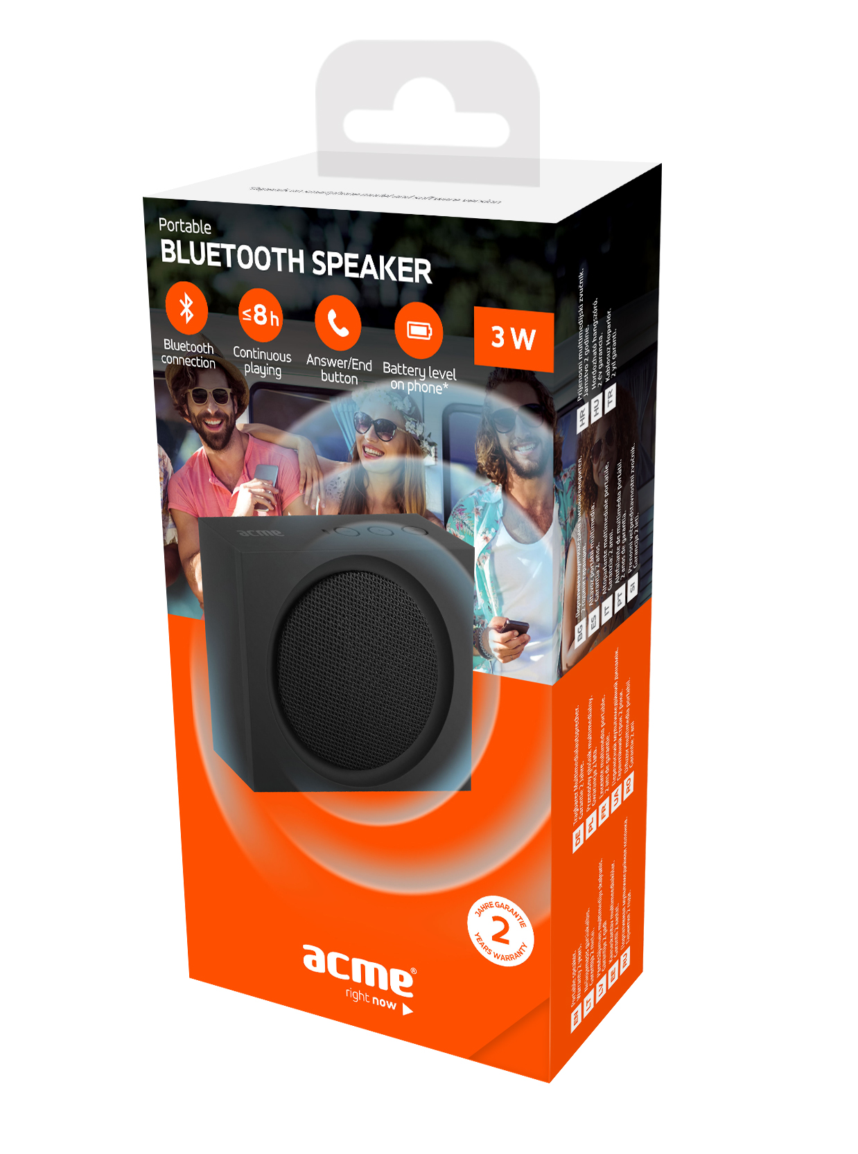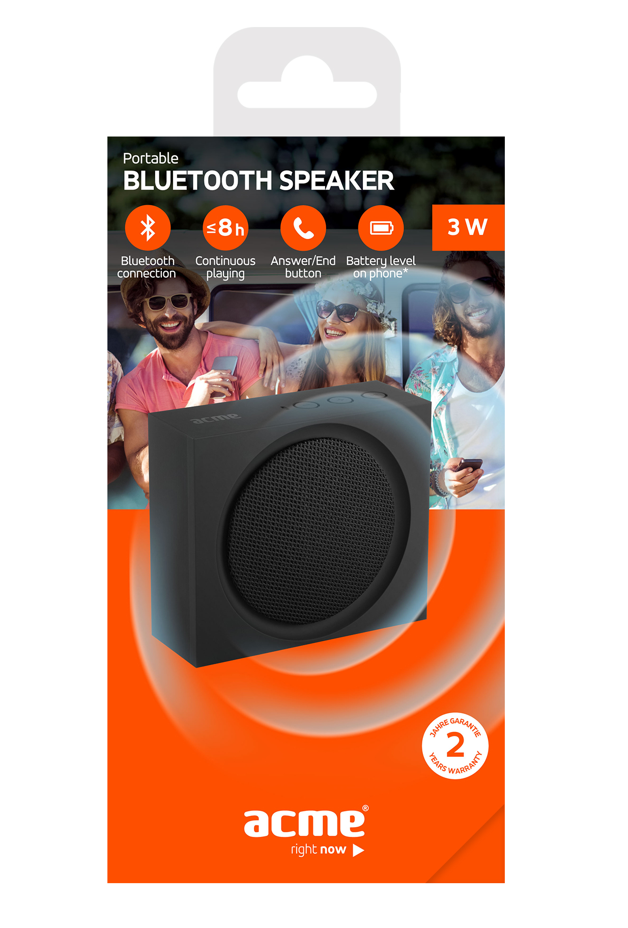 Głośnik ACME PS101 Bluetooth jest to kompaktowe rozwiązanie, dla osób, które cenią sobie dobrą jakość dźwięku. Czas odtwarzania muzyki to 8 godzin, a poziom naładowania baterii wyświetlany jest na ekranie telefonu.