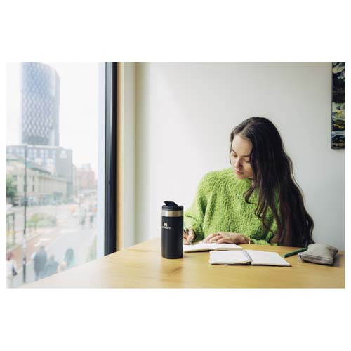 Stanley AeroLight™ lekki, dwuścienny kubek przenośny o pojemności 350 ml z izolacją próżniową zaprojektowany tak, aby utrzymywać wysoką temperaturę napojów przez 6 godzin lub niską przez 8 godzin. Kubek jest szczelny i posiada zakręcaną pokrywkę z blokadą. Oznacza to, że nie musisz martwić się o rozlanie, gdy wrzucasz butelkę do torby i wskakujesz do pociągu podmiejskiego lub rozpoczynasz ćwiczenia. Ponadto kubek AeroLight™ można myć w zmywarce, nie zawiera BPA i został zaprojektowany z myślą o łatwym czyszczeniu. Pasuje do większości samochodowych uchwytów na kubki. Kubi przenośne przyjazne dla osób korzystających z transportu publicznego są o 33% lżejsze niż standardowe naczynia Stanleydo napojów wykonane ze stali nierdzewnej.