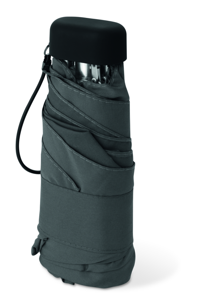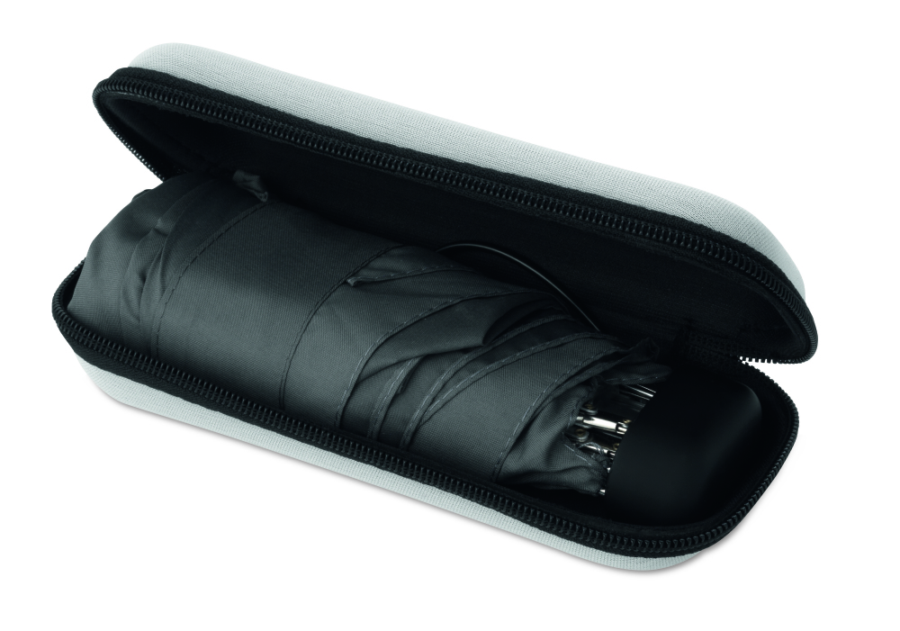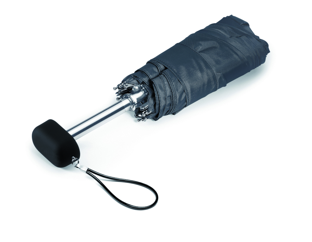 Kieszonkowa, manualnie składana na 5, mini parasolka z aluminiowym stelażem.Tkanina polyester 190T. Etui z mikrofibry. 20 cali.