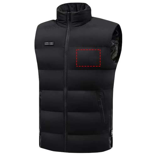 Innowacyjna, uniwersalna i wiatroodporna kamizelka, która zapewnia jednorodne ciepło dzięki 11 podgrzewanym wkładkom umieszczonym z przodu, z tyłu i na górze kamizelki. Do wyboru są 3 poziomy temperatury (niska, średnia i wysoka). Dostępna w czterech różnych rozmiarach: S-M (długość 58 cm x klatka piersiowa 48 cm), M-L (długość 64 cm x klatka piersiowa 54 cm), L-XL (długość 66 cm x klatka piersiowa 60 cm), XXL- XXXL (długość 74 x klatka piersiowa 66 cm). Kamizelka została zaprojektowana z bocznymi zamkami błyskawicznymi, aby idealnie dopasować się do każdej sylwetki i z myślą o osobach, które chcą zachować swobodę ruchów w chłodne dni. W zestawie znajduje się już podłączony powerbank o pojemności 10 000 mAh. Zapakowana w etui z TPU (38 x 30 cm).