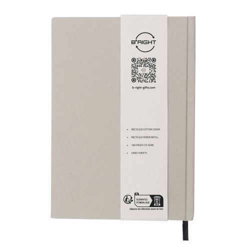 Notatnik ok. A5 B'RIGHT, okładka z bawełny z recyklingu | Tamytrice / Szary