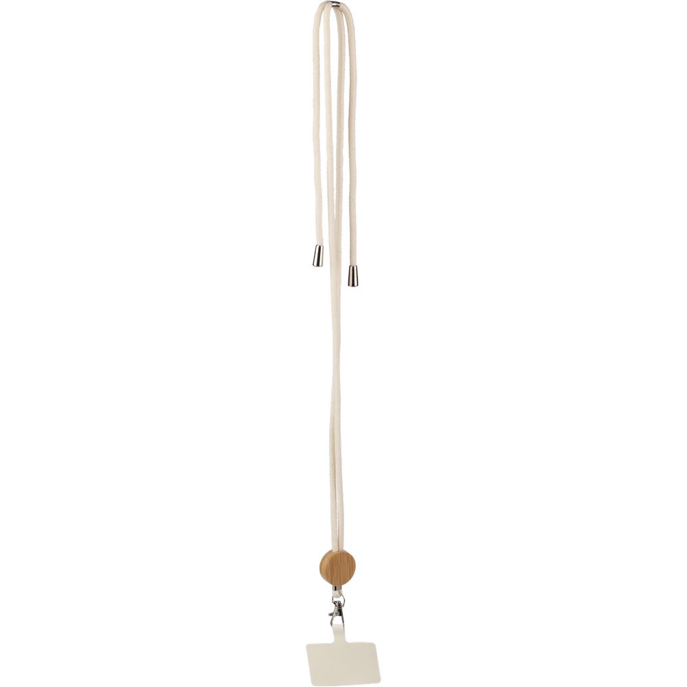 Smycz na telefon z metalowym karabińczykiem ułatwiającym przypięcie, produkt wykonany z bawełny