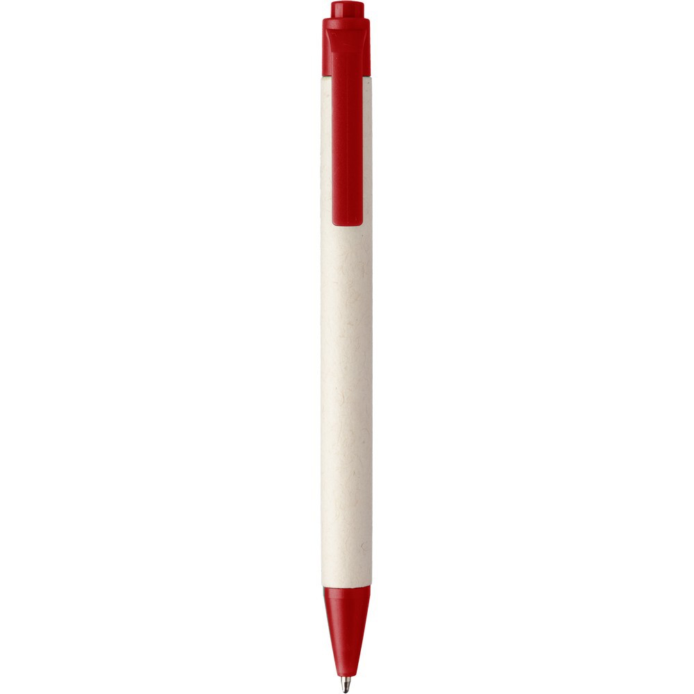 Długopis z kolorowym klipem, można go przyczepić do notatnika lub koszuli, ikona ABS z recyklingu na produkcie, wyróżnia go nietypowy materiał wykonania, produkt wykonany z kartonika po mleku z recyklingu i ABS