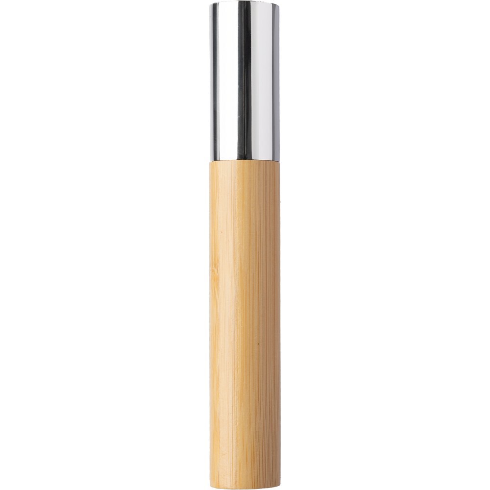 Długopis przekręcany z bambusowym trzonem, posiada niebieski wkład, bambusowa tuba chroniąca przed zniszczeniem w komplecie, produkt wykonany ze stali nierdzewnej