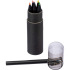 Zestaw 6 kredek z ozdobnym czarnym trzonem, w okrągłym pudełku zamykanym zatyczką z wbudowaną temperówką, dzięki której łatwiej je przechowywać i trudniej uszkodzić, produkt wykonany z kartonu z recyklingu i ABS