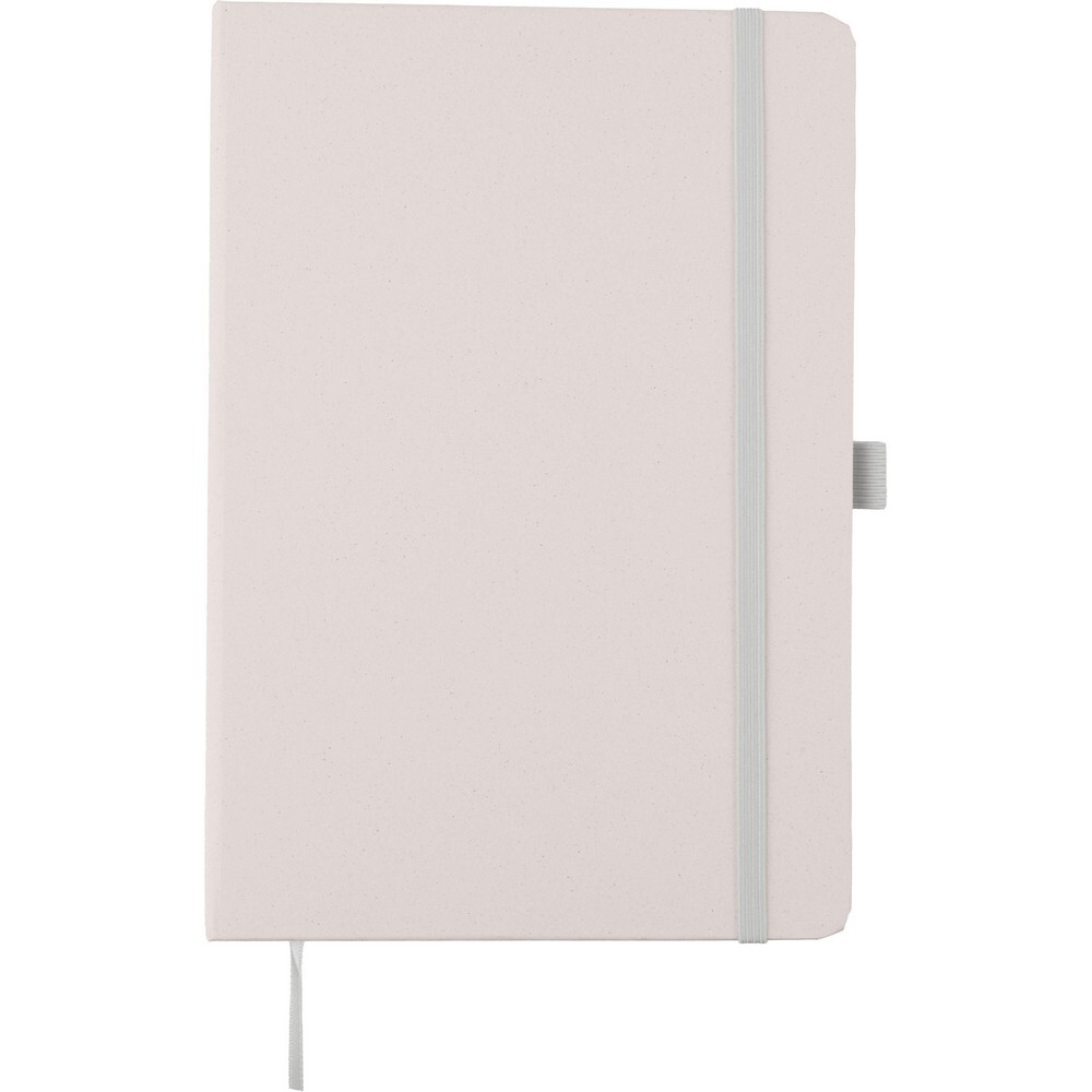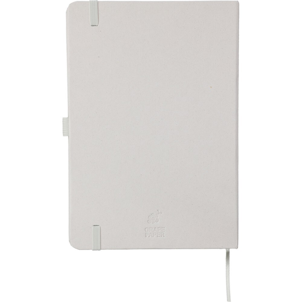 Notatnik w formacie ok. A5, posiada 80 stron w linie drukowanych tuszem sojowym, tasiemka zakładkowa umożliwia wygodne zaznaczanie ostatniej strony lub ważniejszych notatek, dodatkowe zamknięcie w postaci dopasowanej kolorystycznie elastycznej opaski, zmieści się do szkolnego plecaka, notatnik posiada papierową okładkę Favini pochodzącą z Włoch, ikona surowca na produkcie, produkt wykonany z kartonu i resztek produkcyjnych (04 - lawenda, 05 - wiśnia, 06 - cytrusy, 18 - migdały, 25- winogrona) oraz papieru 70 g/m²