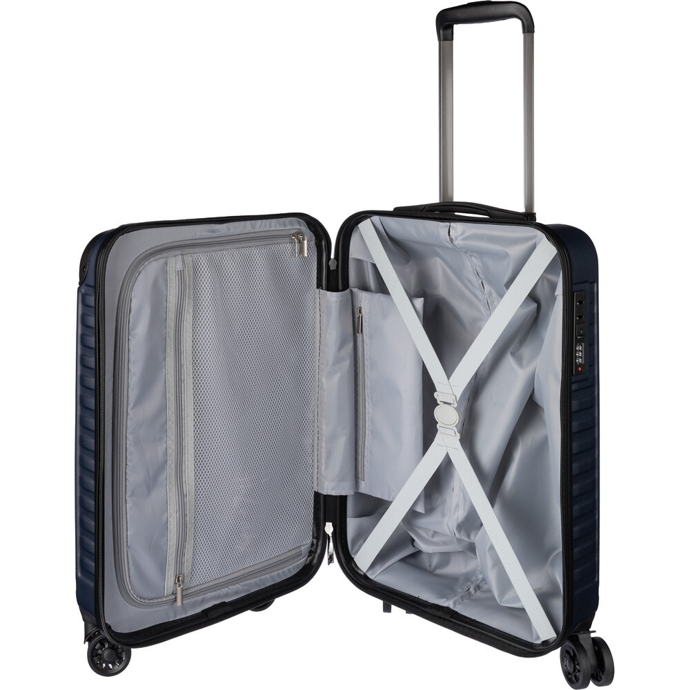 Walizka, torba na kółkach, kieszenie wewnętrzne zapinane na zamek, sprawdzi się podczas podróży samolotem, pociągiem lub samochodem, 8 kółek, wygodny trzypoziomowy system regulacji uchwytu, posiada zamek numeryczny chroniący przed kradzieżą, produkt wykonany z ABS