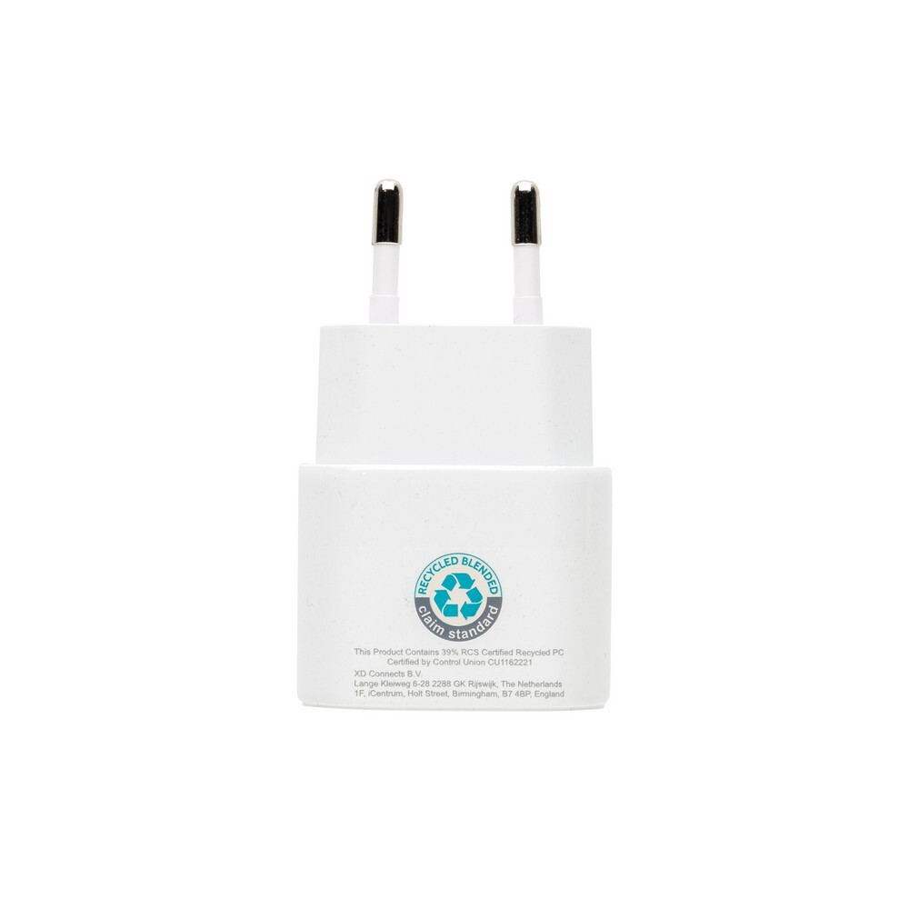Zestaw do ładowania 2 w 1, ładowarka ścienna USB typu C 20W, kabel 3 w 1 60W, końcówki: 2 x USB C, iOS, wykonane z ABS i TPE z recyklingu, wyjście ładowarki 5V/3A, 9V/2.22A, 12V/1.67A, 20W, całkowita zawartość materiałów z recyklingu obliczona w oparciu o wagę całkowitą przedmiotu: 59%, w pudełku z certyfikatem FSC®