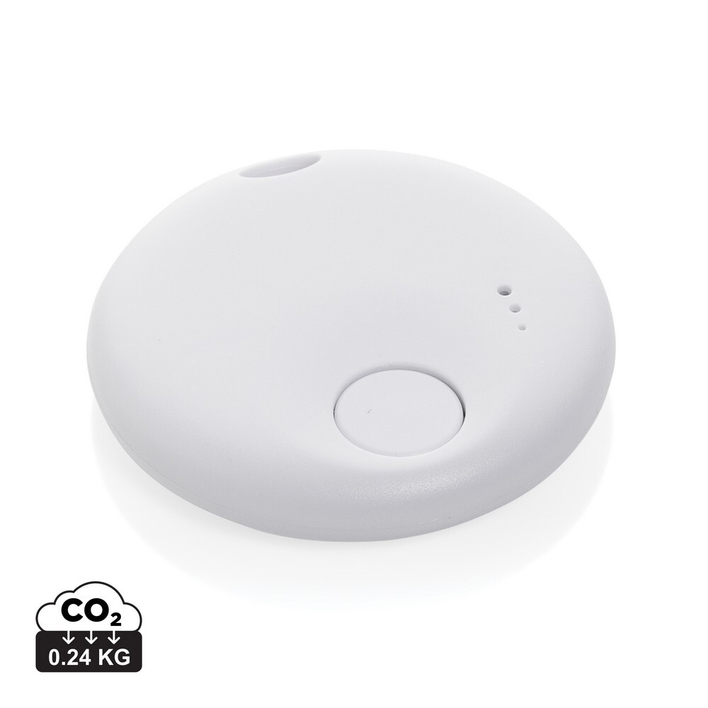 Bezprzewodowy wykrywacz kluczy, wykonany z ABS z recyklingu, kompatybilny ze wszystkimi urządzeniami iOS oraz aplikacją Apple Find My, wbudowany głośnik umożliwia łatwe znalezienie wykrywacza, czas pracy na jednej baterii wynosi do 1 roku, wymienialna bateria CR2032, całkowita zawartość materiałów z recyklingu obliczona w oparciu o wagę całkowitą przedmiotu: 50%, w pudełku z certyfikatem FSC® mix