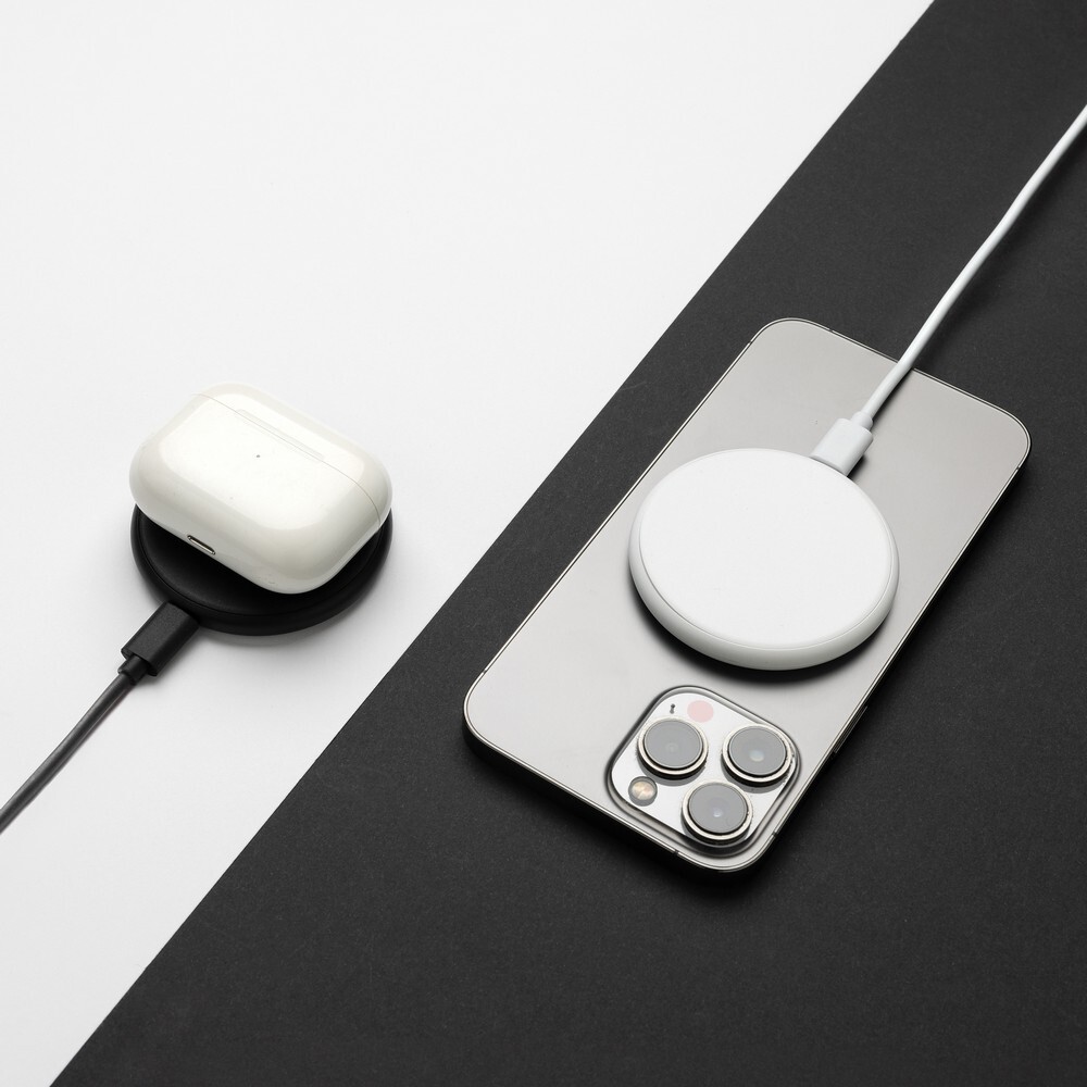 Bezprzewodowa, magnetyczna ładowarka 3 w 1 15W, nadaje się do ładowania telefonu, słuchawek i smartwatcha, wykonana z ABS z recyklingu, działa z telefonami posiadającymi możliwość ładowania indukcyjnego, wyjścia 9V/2.2A, 9V/0.4A, 9V/0.5A, kabel 120 cm z TPE z recyklingu w komplecie, całkowita zawartość materiałów z recyklingu obliczona w oparciu o wagę całkowitą przedmiotu: 35%, w pudełku z certyfikatem FSC® mix