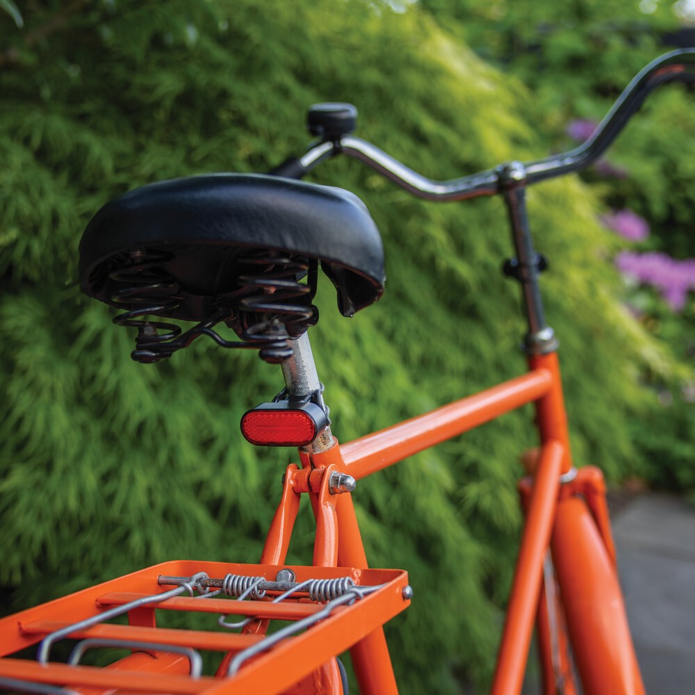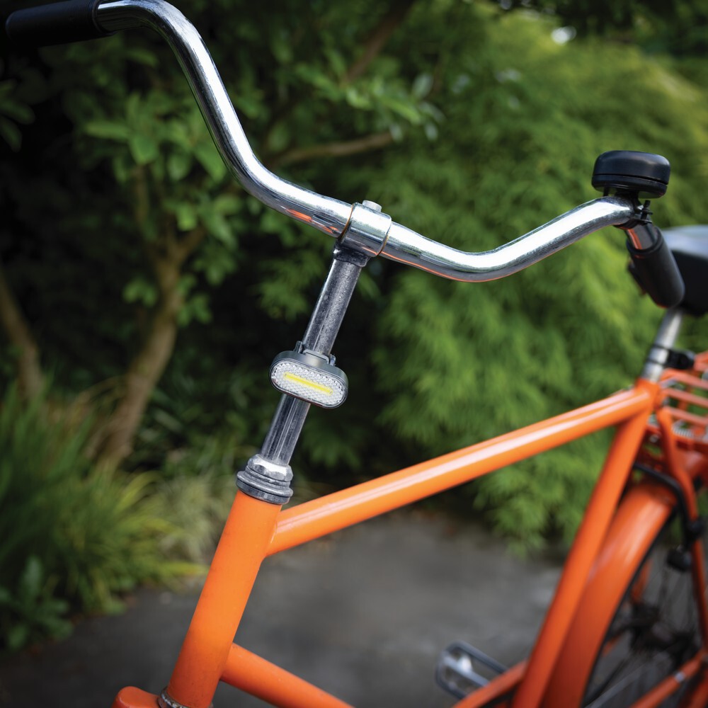 Zestaw 2 lampek rowerowych 1W, jasność 60 lumenów, wodoodporne IPX4, 5 trybów świecenia, wbudowana bateria o pojemności 400 mAh umożliwia ciągłą pracę do 2,5 godzin, ponowne ładowanie w ciągu 1 godziny, wykonane z ABS z recyklingu z certyfikatem RCS, kabel USB typu C z TPE z recyklingu w komplecie, całkowita zawartość materiałów z recyklingu obliczona w oparciu o wagę całkowitą przedmiotu: 43%