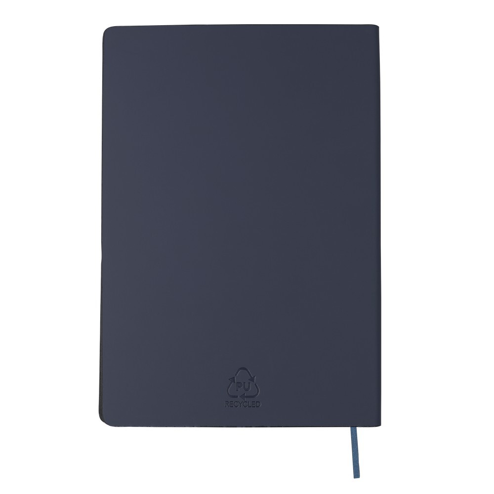 Notatnik w formacie A5, posiada 80 kartek w linie, miękka, elastyczna okładka ze skóry PU, tasiemka zakładkowa umożliwia wygodne zaznaczanie ostatniej strony lub ważniejszych notatek, ikona PU z recyklingu na produkcie, produkt wykonany z PU z recyklingu