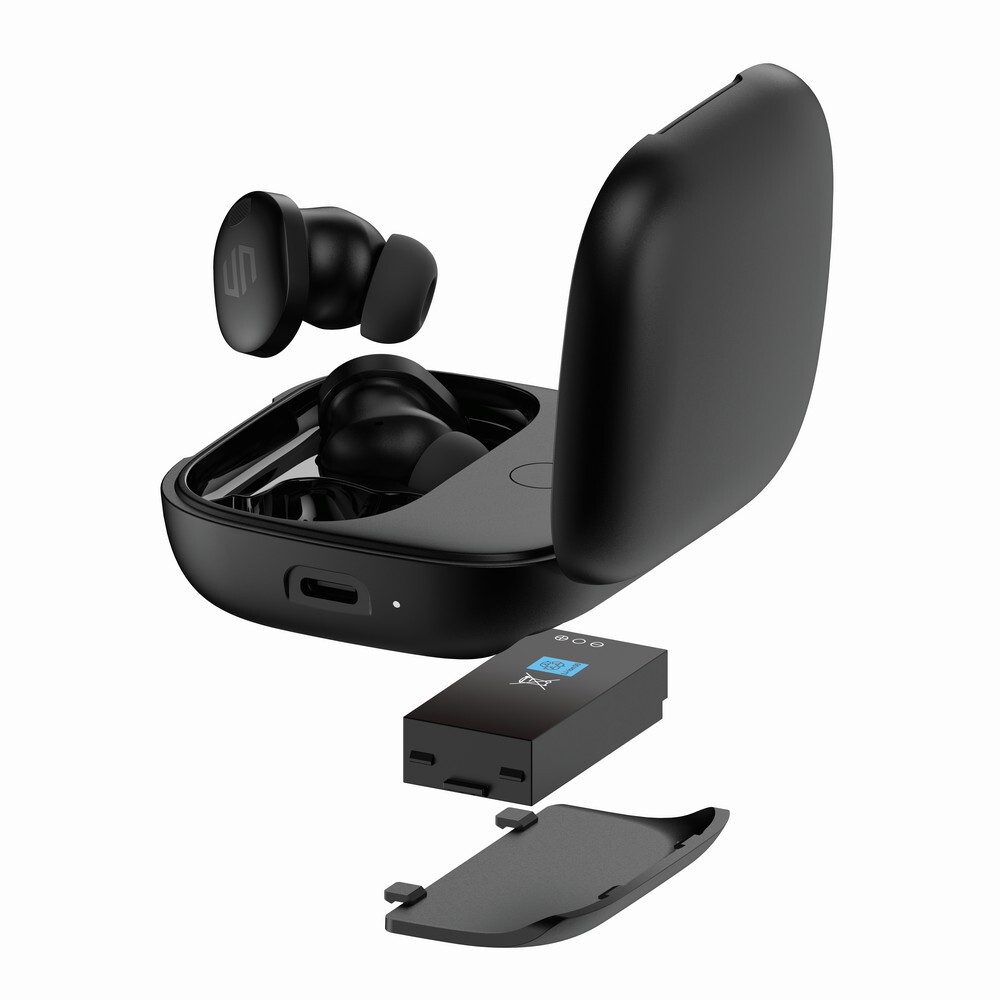 Bezprzewodowe słuchawki douszne, dzięki specjalnej konstrukcji słuchawki można łatwo rozebrać i naprawić, wymienna bateria, wodoodporne IPX5, posiadają funkcje ANC i ENC, wykonane z PC z recyklingu z certyfikatem RCS, 5 wbudowanych mikrofonów dla krystalicznie czystych rozmów, funkcja asystenta głosowego, funkcja odbierania połączeń, akumulator słuchawek umożliwia odtwarzanie muzyki do 6 godzin na jednym ładowaniu, całkowita zawartość materiałów z recyklingu obliczona na podstawie wagi całkowitej produktu: 36%
