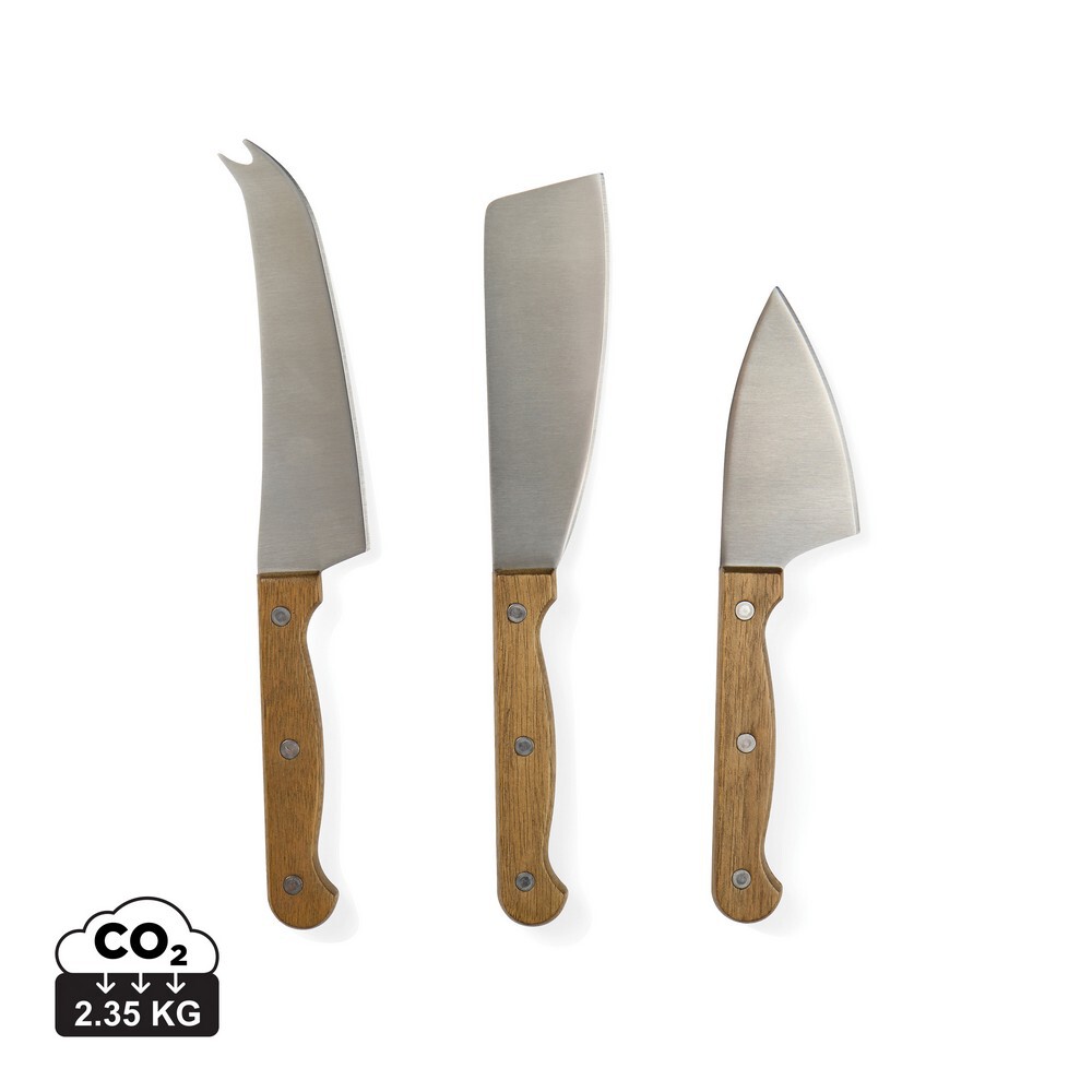Zestaw do sera, w komplecie: ząbkowany nóż, nóż do sera cheddar oraz nóż do parmezanu, wykonane ze stali nierdzewnej, uchwyty z drewna akacjowego, w pudełku przypominającym książkę z historią sera wykonanym z papieru z certyfikatem FSC®