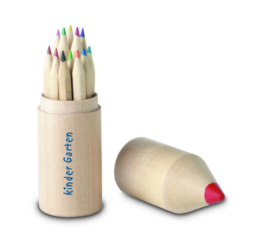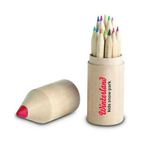 Kredki zapakowane są w naturalne eco-pudełko o kształcie ołówka, na którym jest specjalne miejsce na Twoje logo lub inną grafikę.