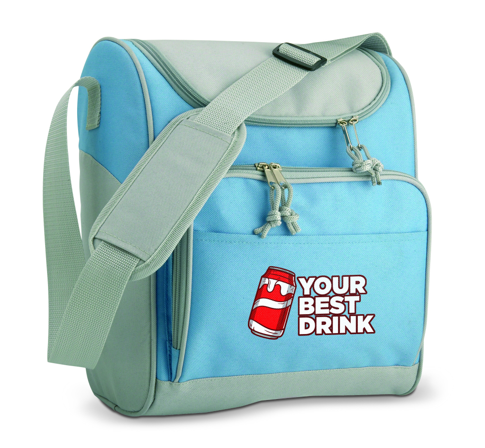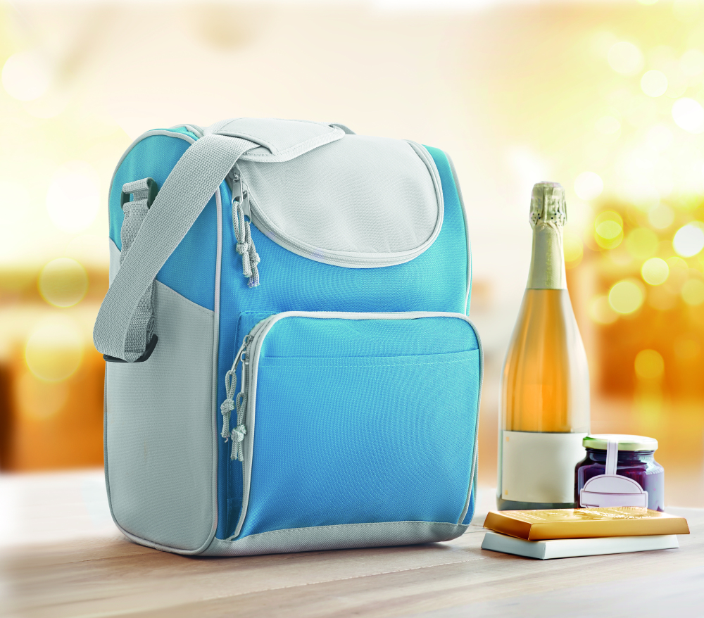 Torba izotermiczna z przednią kieszenią i dwoma suwakami. Materiał: poliester 600D.