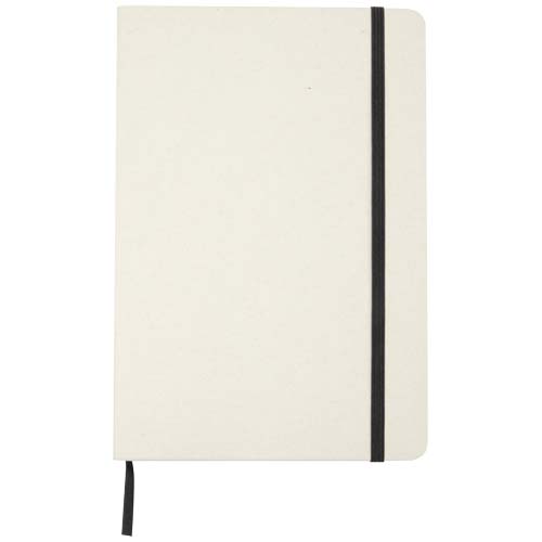 Notatnik Bass A5 w twardej okładce zawiera 80 papierowych kartek w linie o gramaturze 80 g/m2 i jest wykonany z przetworzonych kartonów na mleko.