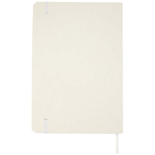 Notatnik Bass A5 w twardej okładce zawiera 80 papierowych kartek w linie o gramaturze 80 g/m2 i jest wykonany z przetworzonych kartonów na mleko.