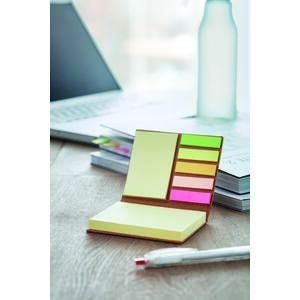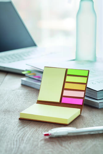 5 – częściowy zestaw kartek samoprzylepnych zawiera duży i średni bloczek żółtych kartek do notatek oraz małe karteczki w żywych i barwnych kolorach.