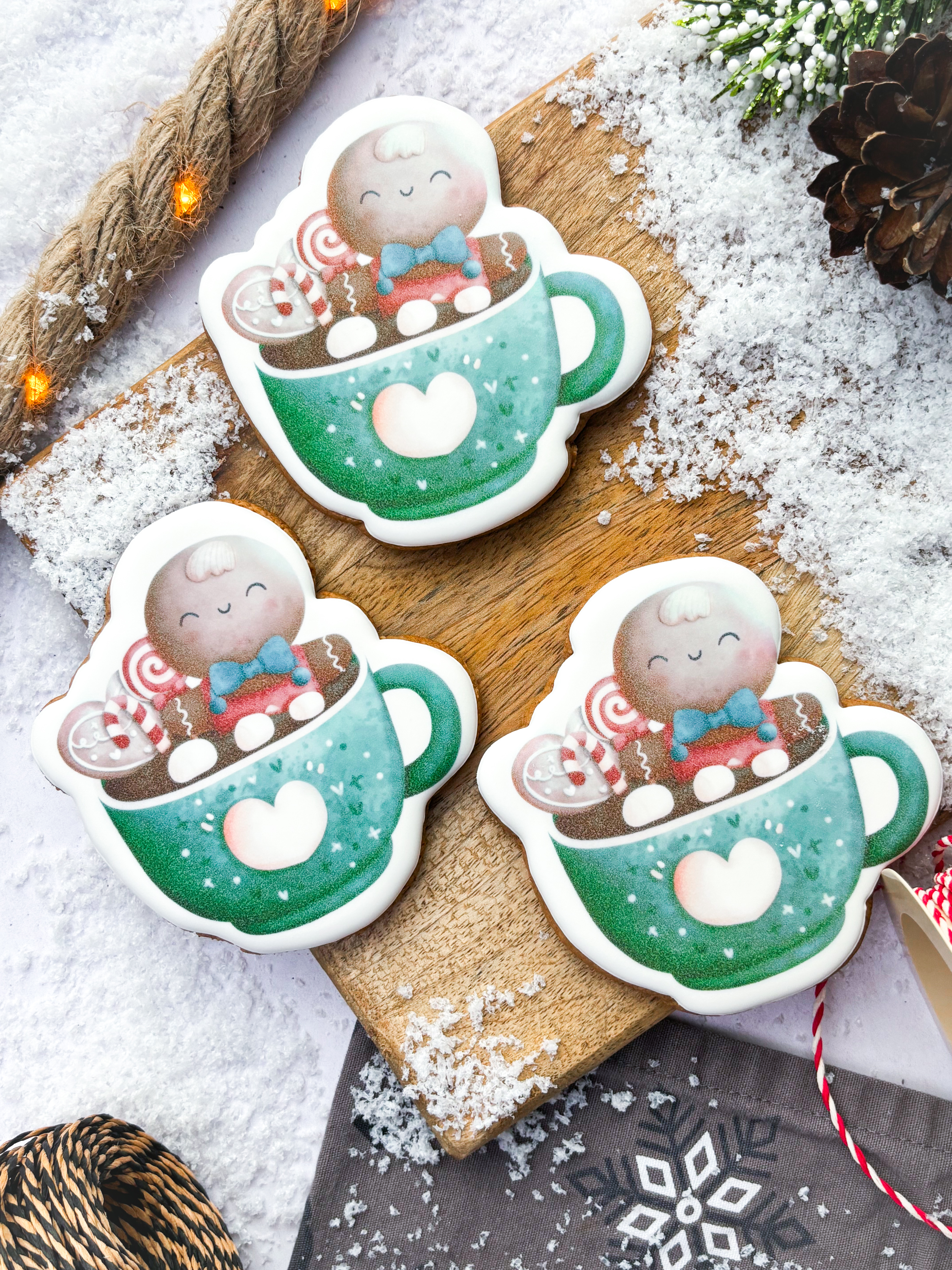 Oferujemy firmowe pierniki świąteczne z logo, pięknie zdobione pierniki w kształcie świątecznych kubków, które doskonale podkreślą charakter Twojej marki.