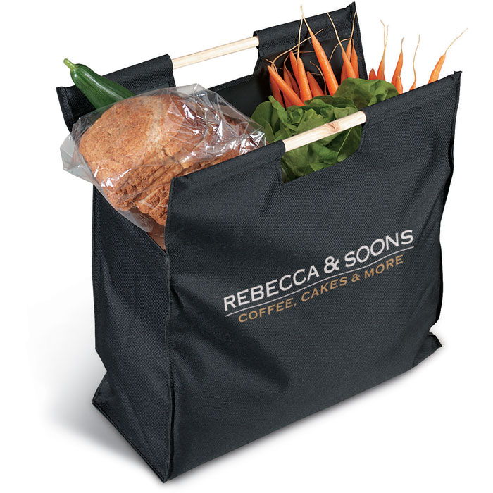 Torba na zakupy z drewnianymi rączkami. Materiał: poliester 600D.