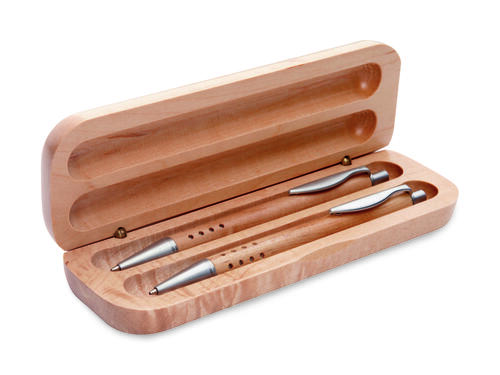 Długopis i ołówek w jednym - zestaw został wykonany z wysokiej jakości materiału drewnopodobnego. Zestaw długopis i ołówek w jednym z grawerem ma naturalne wykończenie, które podkreśla usłojenie i ciepło drewna, oferując gładki, wygodny chwyt, który gwarantuje długie sesje pisania bez dyskomfortu. Wszystko to zostało zamknięte w estetycznym etui utrzymanym w tym samym eleganckim charakterze drewna. Długopis zapewnia trwałe i precyzyjne linie podczas pisania skryptów. Ołówek automatyczny jest wyposażony w niezawodny mechanizm przyciskowy, który zapewnia stały rysik oraz zintegrowaną gumkę do ścierania. Wykończenie z naturalnego drewna zapewnia przyjemność z użytkowania. Eleganckie usłojenie drewna w połączeniu z eleganckimi metalicznymi akcentami pióra i ołówka tworzy wizualną równowagę rustykalnego uroku i nowoczesnego designu.