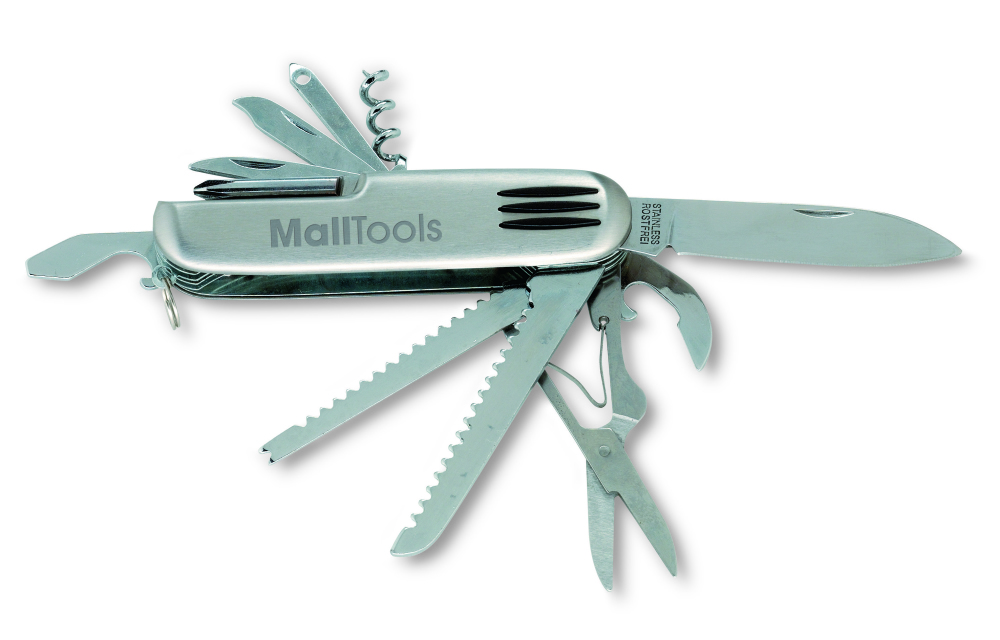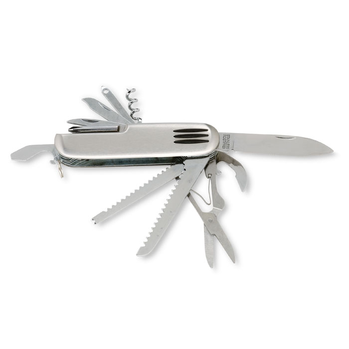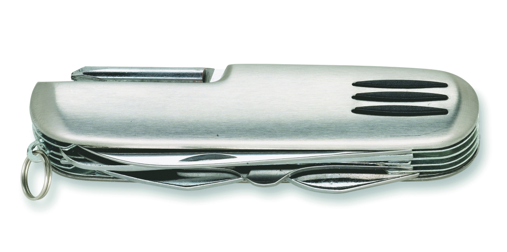 Stalowy wielofunkcyjny scyzoryk kieszonkowy, matowe wykończenie. 11 funkcji.