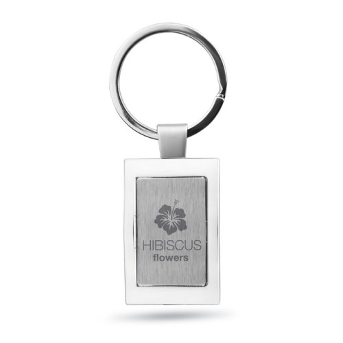 Prostokątny brelok ze stopu cynku. Indywidualnie pakowany w czarne, ozdobne pudełko.