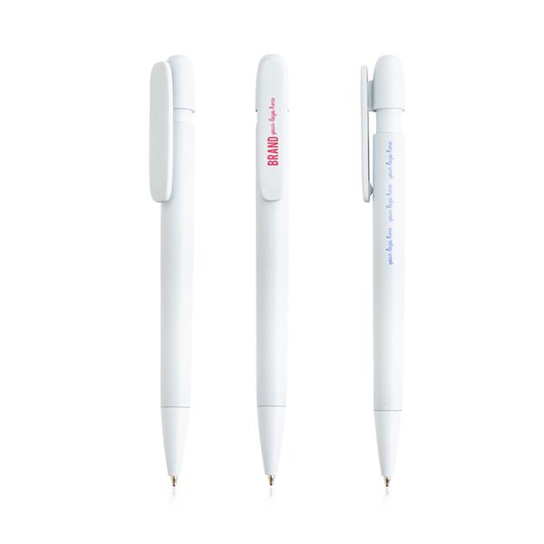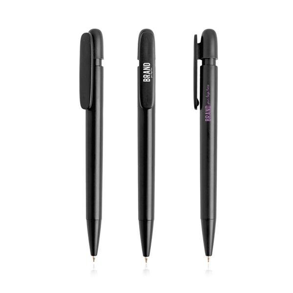 Długopis z recyklingowanego ABS. Wciskany długopis wykonany z plastiku pochodzącego z recyklingu, z szerokim klipsem. Ten długopis piszący na niebiesko to idealny wybór na praktyczny i ekologiczny prezent!
