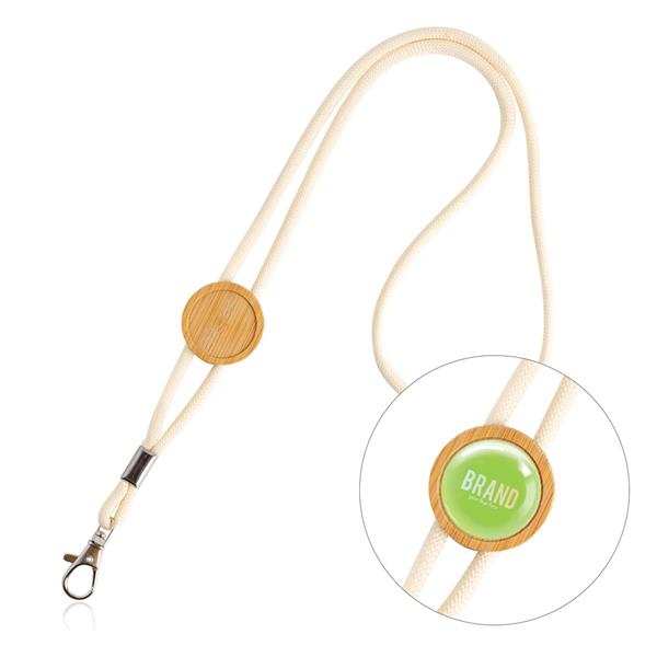 Smycz sznurkowa z bambusowym detalem regulującym, świetnie nadaje się pod doming. Dodaj swoje logo, slogan lub unikalny projekt, aby stworzyć wyjątkowy produkt odzwierciedlający tożsamość Twojej marki