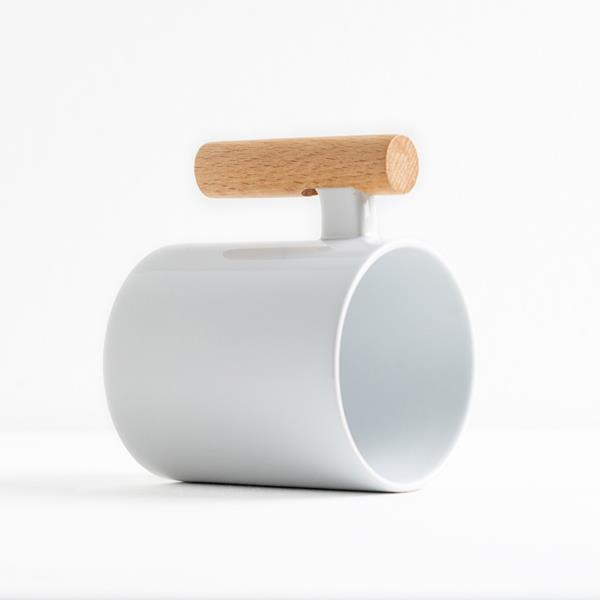 Kubek z drewnianym uchwytem / Mugoo / Biały