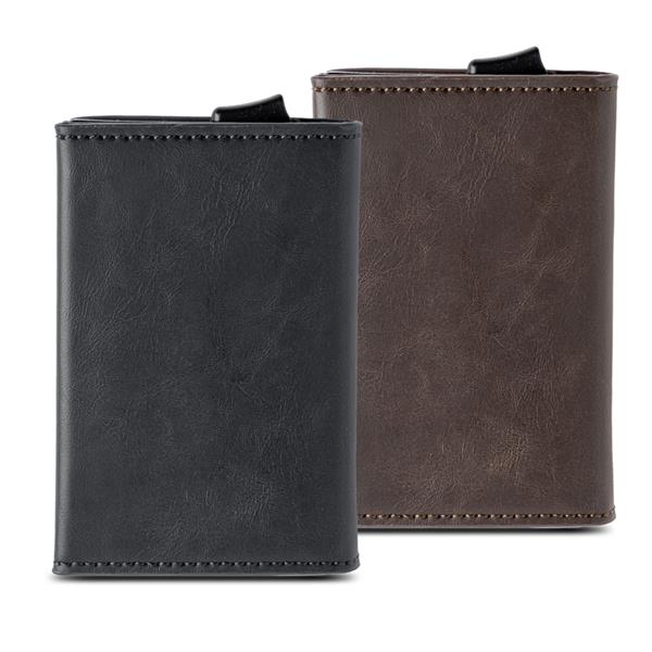 Portfel na karty i monety z ochroną RFID. Ten portfel może przechowywać do 6 kart, do których dostęp można uzyskać za pomocą jednego kliknięcia. Oferuje ochronę RFID. Wewnątrz znajduje się przegroda na banknoty oraz dwie dodatkowe przegrody. Posiada również kieszonkę na monety. Dostępny w kolorze czarnym i brązowym.