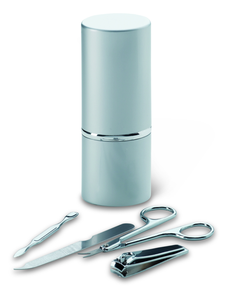 Komplet do manicure w aluminiowej tubie jest nieodłącznym elementem każdego salonu kosmetycznego.