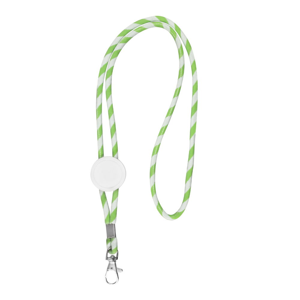 Regulowana smycz wykonana z elany. Logo umieścimy w kółku o średnicy 2,5 cm.
